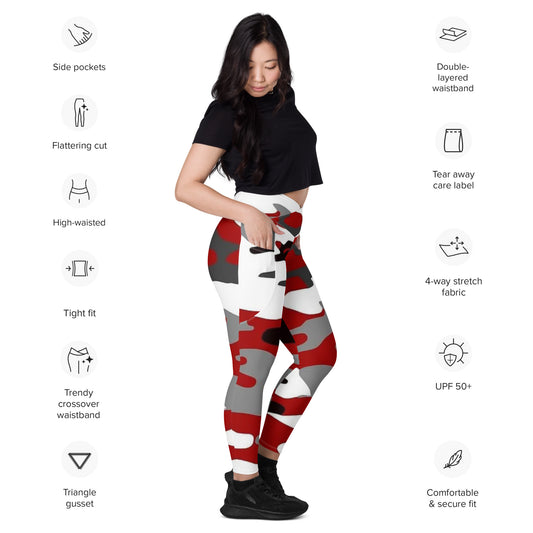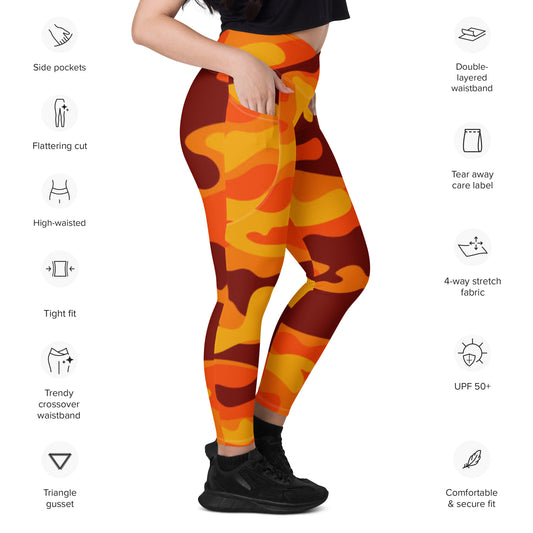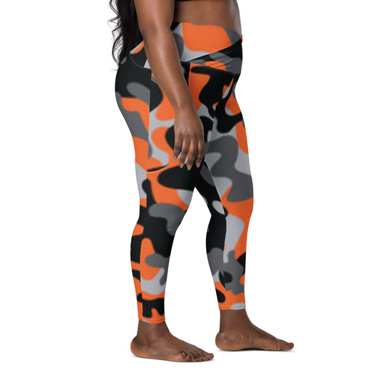 Camo Crossover leggings with pockets (gray, black, & orange)