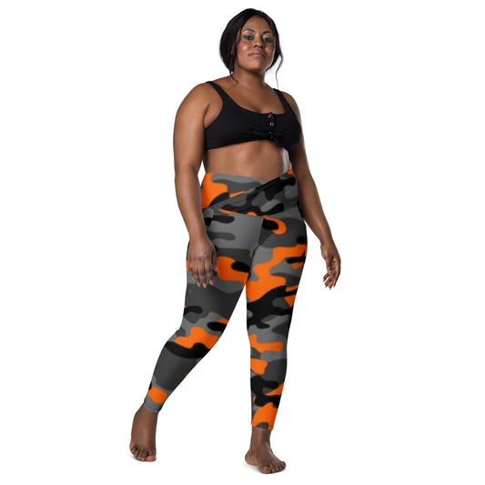 Camo Crossover leggings with pockets (gray, black, & orange)