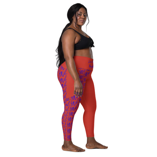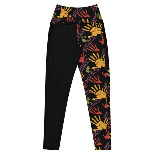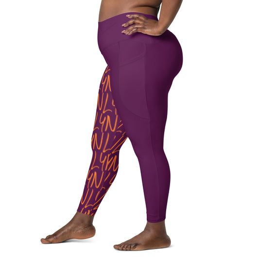 Camo Crossover leggings with pockets (gray, black, & orange)