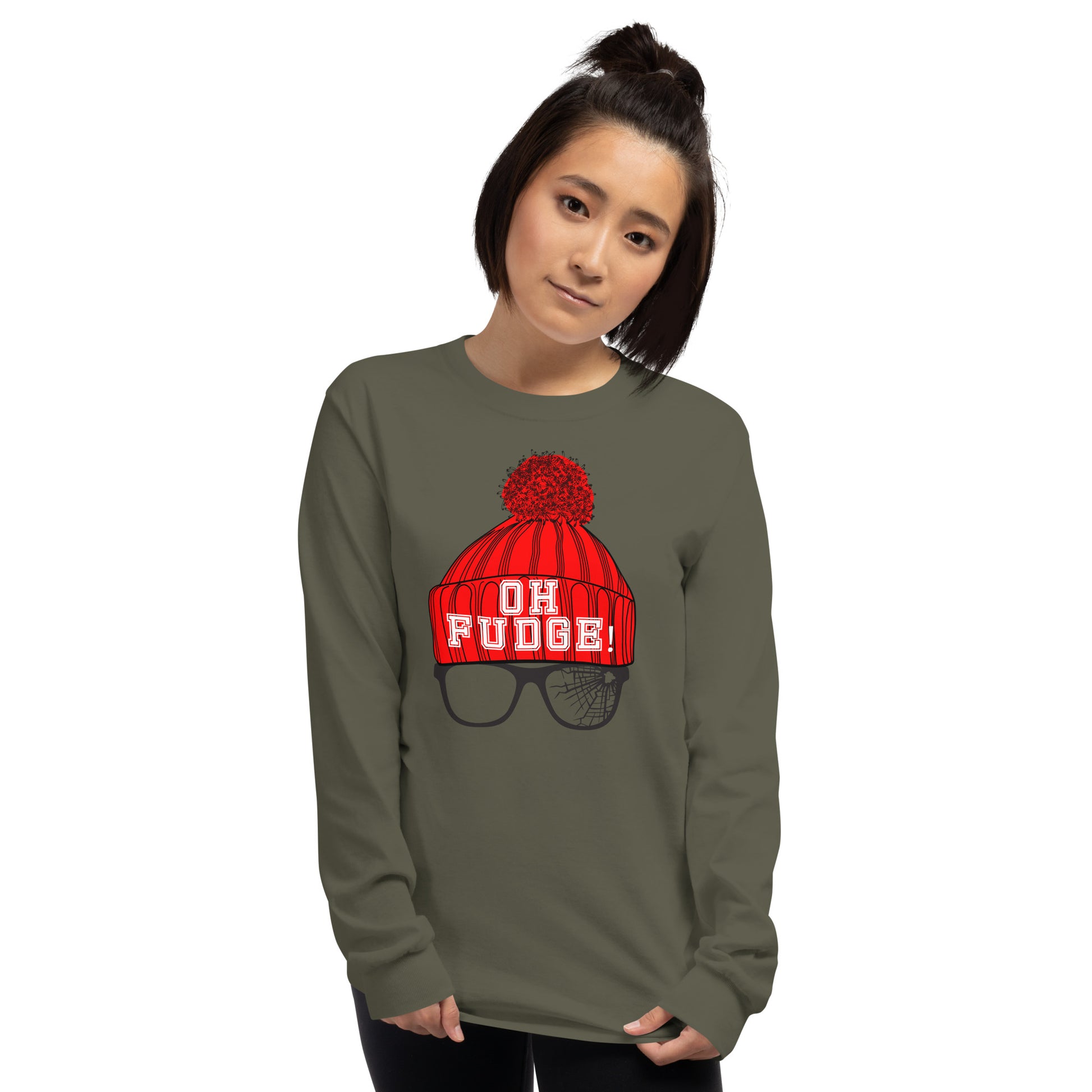 Oh Fudge! This long-sleeved unisex shirt is a holiday must have. Oh Fudge pays homage to everyone's favorite Christmas movie. Wear it to a holiday party or just because. Pair it with, jeans, joggers or your favorite pajamas.